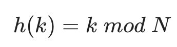 나눗셈법은 가장 떠올리기 쉬운 단순한 해시 함수입니다. 나눗셈법은 키를 소수로 나눈 나머지를 활용합니다.